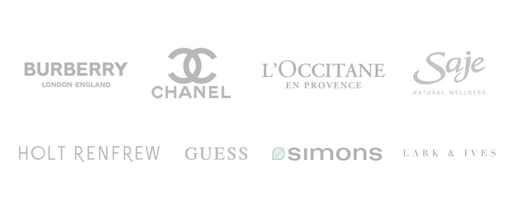 Some of the brands weโve worked with include Burberry, Chanel, LโOccitane, Saje, Holt Renfrew, Guess, Simons, The Latest Scoop, and our own personal brand, Lark & Ives.