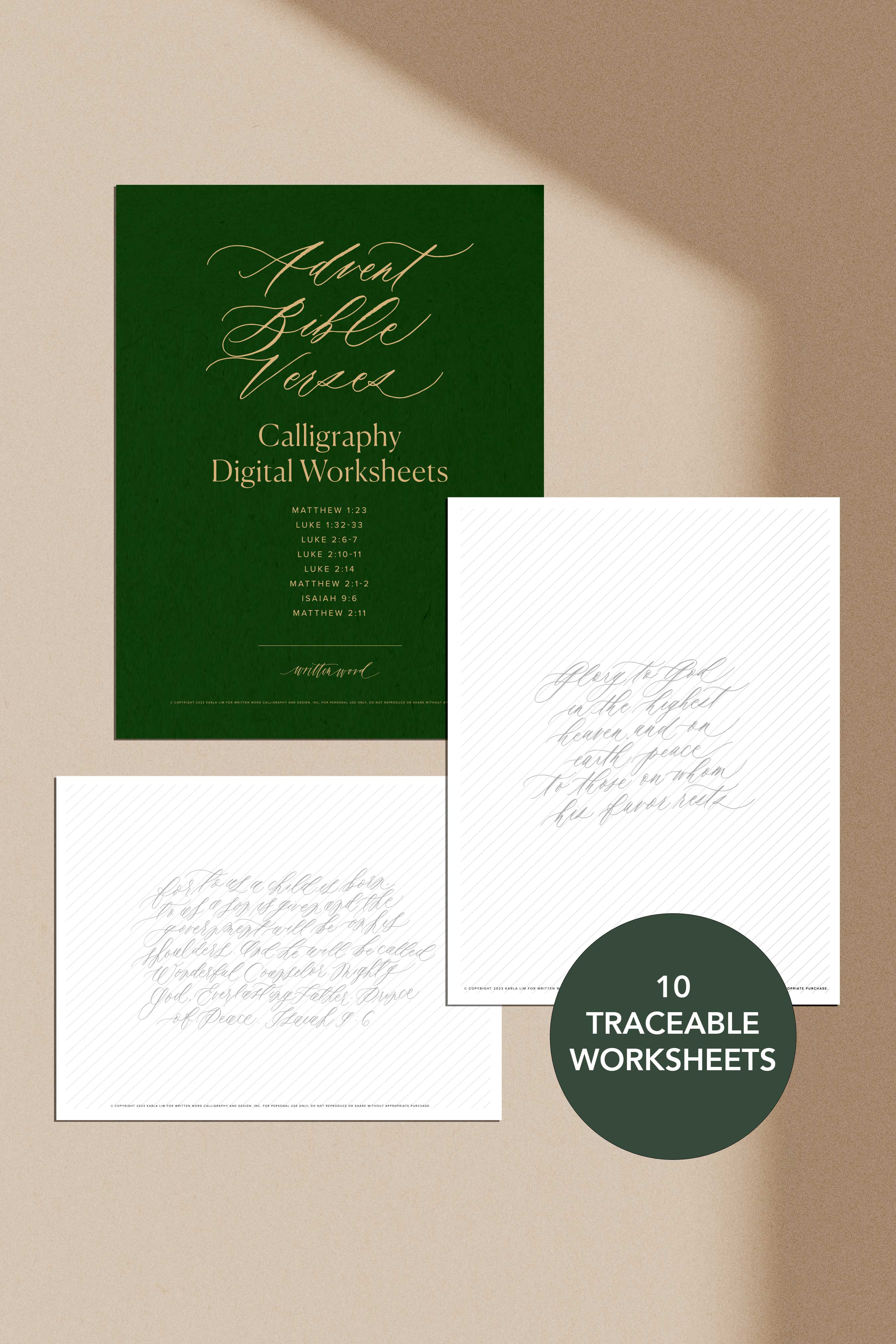 Digital Download of calligraphy verses written in various Written Word Calligraphy styles. In the worksheets, you will be practicing writing a collection of verses that speak about Jesus' birth, specifically around the journey and the night He was born. These are best written while playing Christmas hymns in the background. I hope writing these verses will be a time of worship, meditation and healing for you as it has been for me.