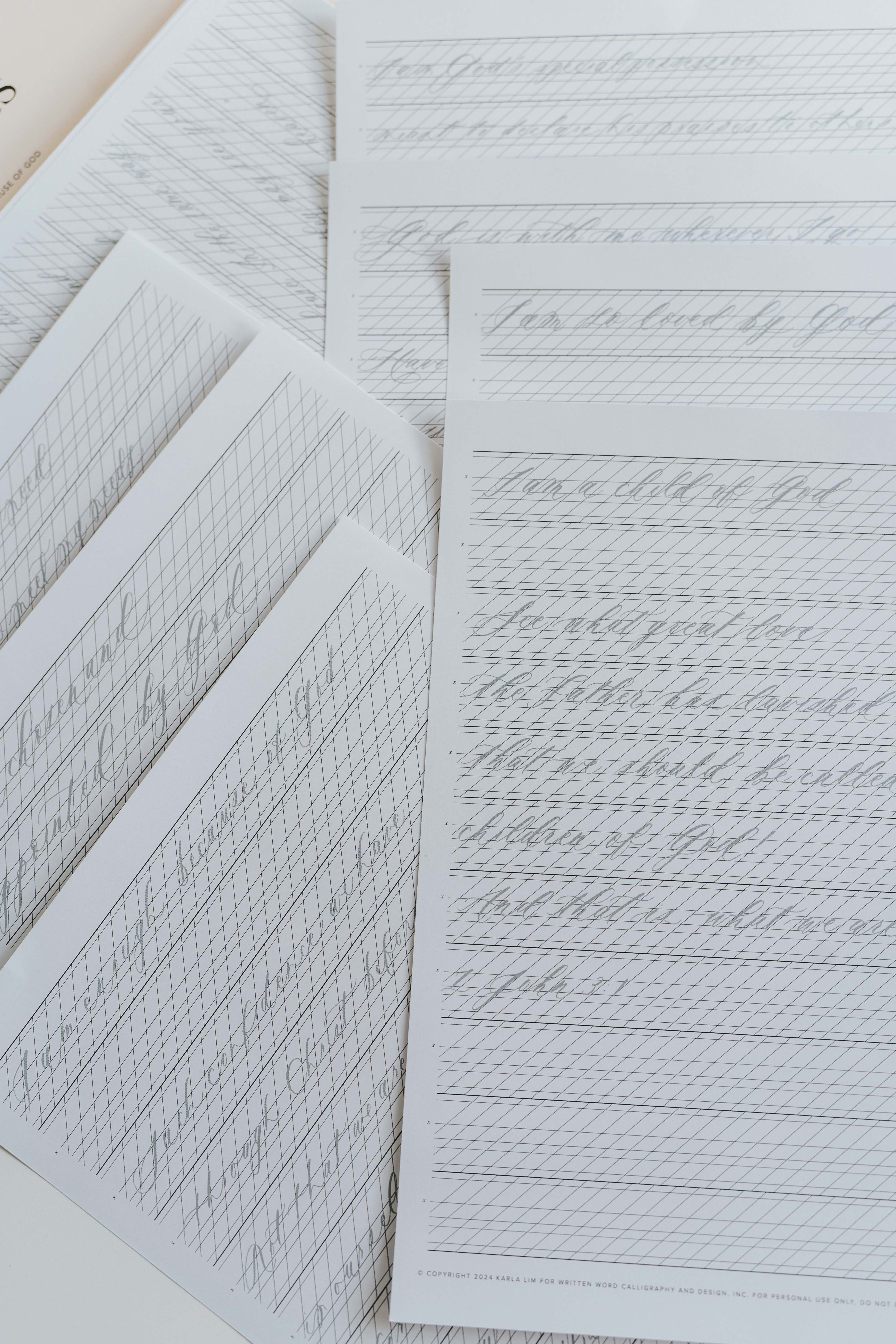 The worksheets feature an instruction guide, 18 Affirmations with the supporting Bible Verses on 8.5x11 sheets with tracing and slant lines, and the same verses in images to be used on Procreate on the iPad. The intention of these worksheets are for practicing to increase muscle memory for writing in calligraphy. An added bonus is that this is an amazing way to relax and meditate on God’s word while practicing, and also hopefully provide you some hope as you struggle through anxiety. Calligraphy supplies are not included in this digital file.