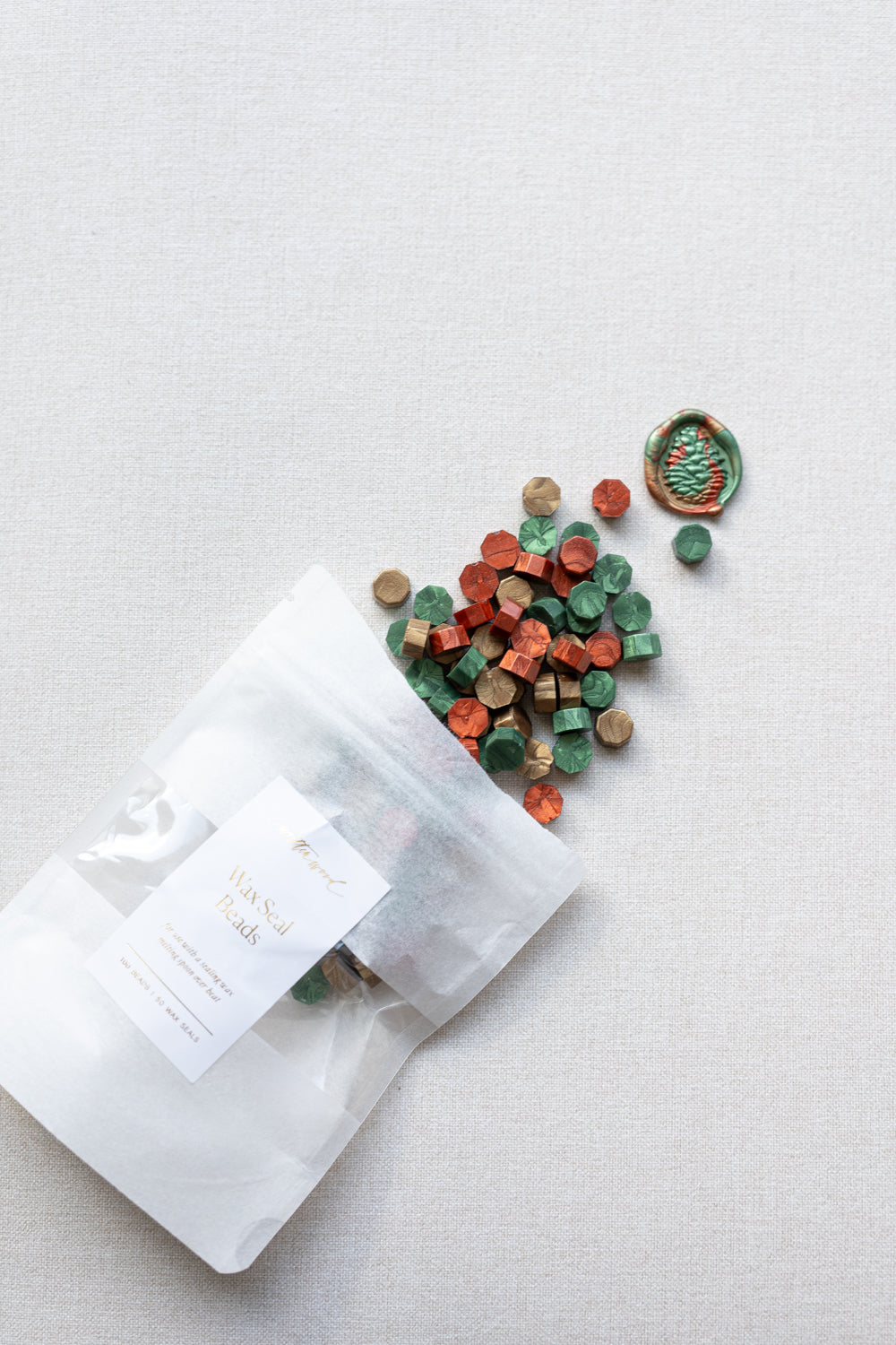 Each package contains 100 wax seal beads, in red, gold and green tones. which can make approximately 50 1 inch wax seals, depending on size and usage. Use the same color each or mix and match for a marbled holiday vibe! You will need 2-3 depending on how large you would like the seals to be. Best used with our Brass Wax Seal Stove and Spoon.