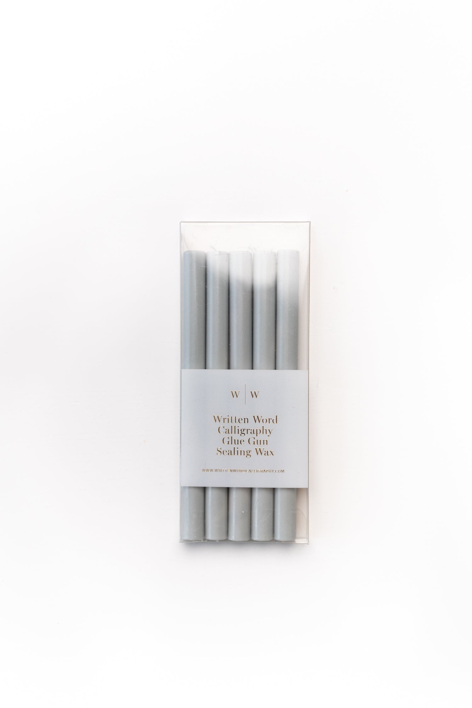 Each box contains 5 pale gray wax sticks, each stick can create 8-12 seals depending on the size and usage. A tinge of sage in the palest gray color for a dreamy, cloudy wax seal.