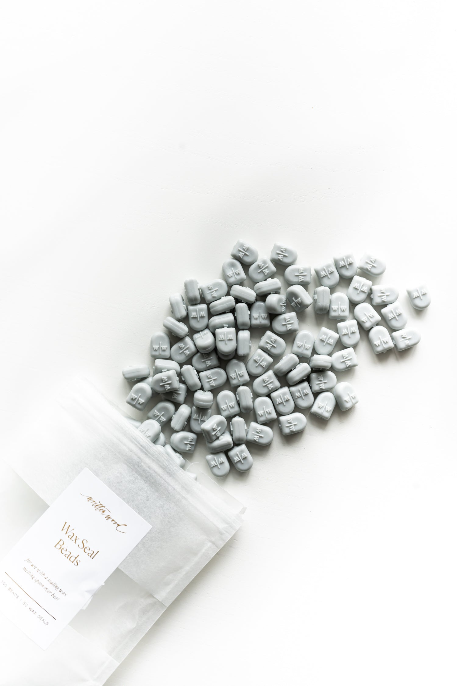 Each package contains 100 pale gray wax seal beads, which can make approximately 50 1 inch wax seals, depending on size and usage. You will need 2-3 depending on how large you would like the seals to be. Best used with our Brass Wax Seal Stove and Spoon. A pale gray with a slight tinge of sage, perfect neutral shade!