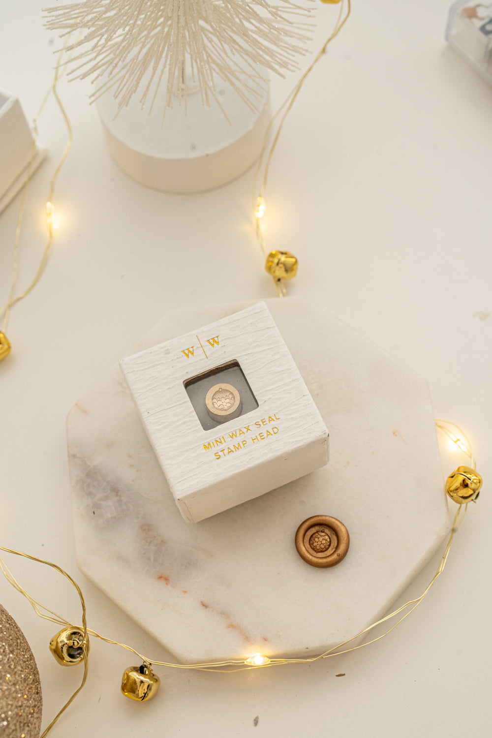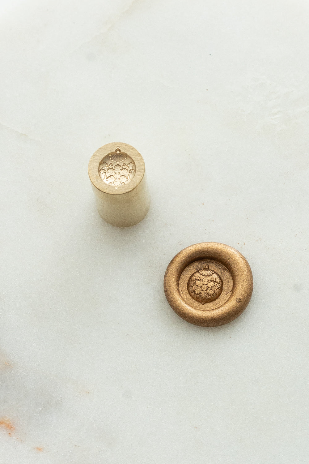 I've always loved hand-painted ornaments, and we were trying to find a way to incorporate a snowflake into our wax seals and so we combined the ornament and the snowflake into this unique piece.