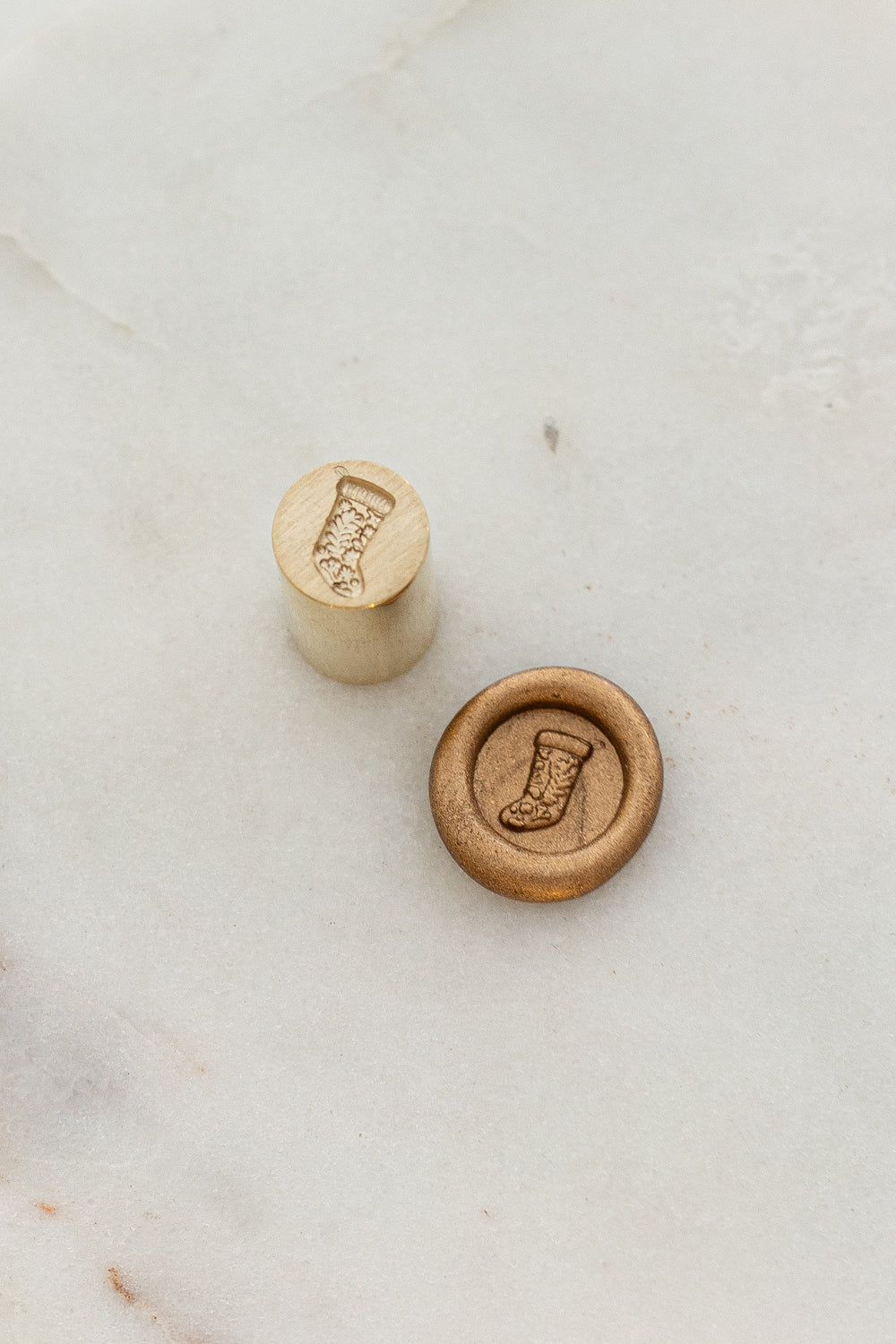 - 9mm diameter circle wax seal head with a 3D illustration of a knitted stocking.