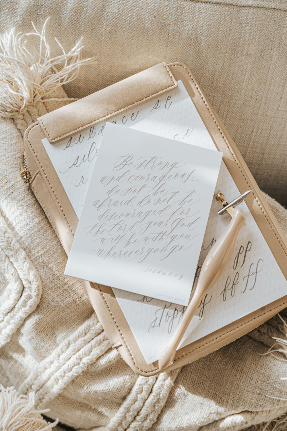 We're so excited to share with you guys our traceable Bible Verse notepad. This 50-paged notepad includes 25 different encouraging Bible Verses written in various calligraphy styles, printed on ink-friendly paper. Each verse is repeated twice, to make 50 pages.