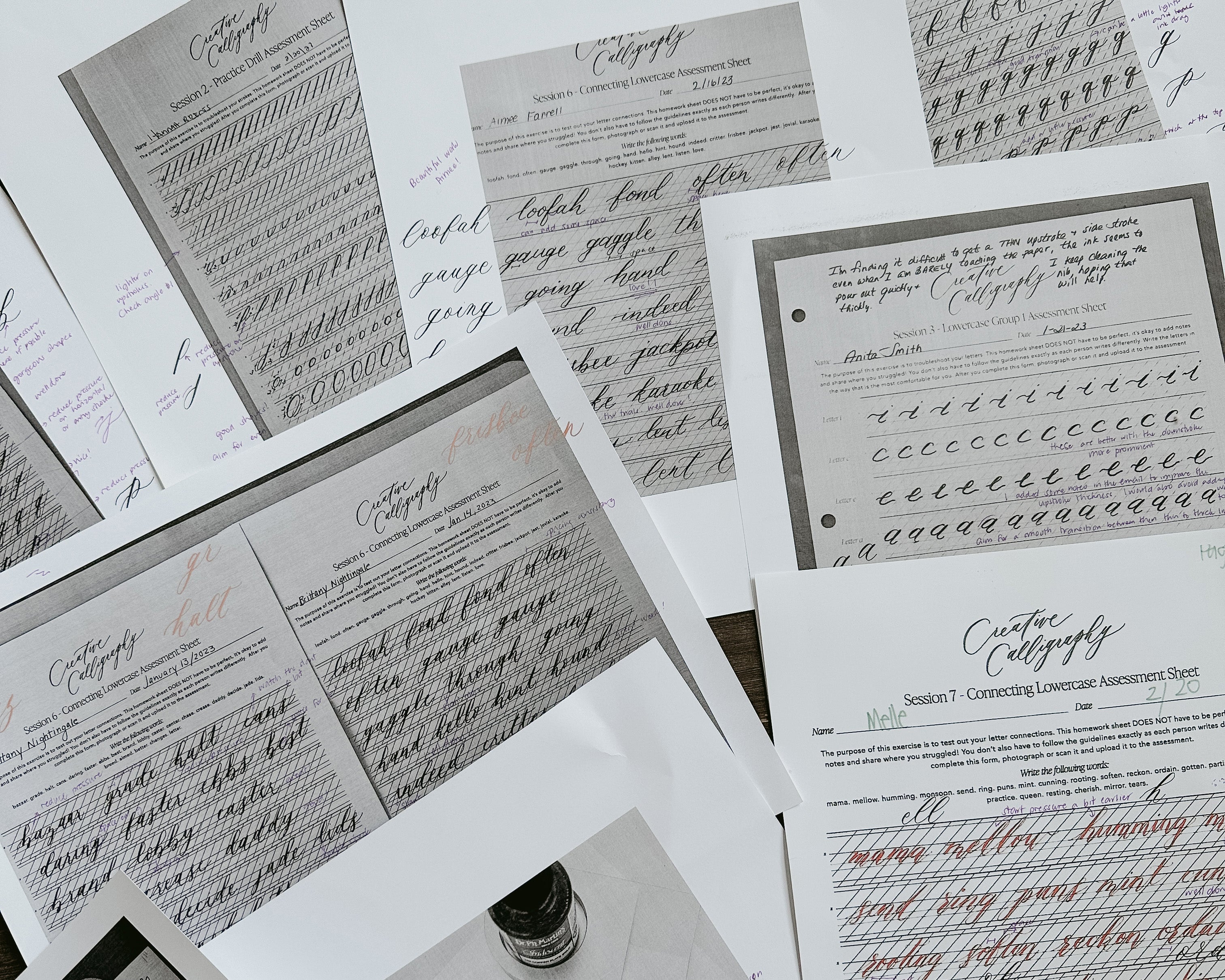 An ongoing calligraphy membership for thoughtful practice, creativity, and community. Inside, you’ll find monthly worksheets, live practice sessions, weekly prompts, homework support, and community encouragement designed to help you write regularly and intentionally.